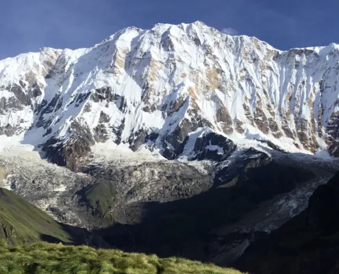 The most anticipated day of the trek. You will reach Annapurna Base Camp, surrounded by towering Himalayan peaks including Annapurna I, Machapuchare, and Hiunchuli. Enjoy breathtaking views in this natural amphitheater of mountains.