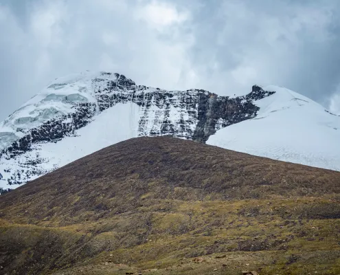 This climb includes high-altitude trekking trails, rocky slopes, glacier travel, snow-covered slopes, and exposed summit sections. The final summit push involves steep snow and ice terrain, where crampons and an ice axe are used.
