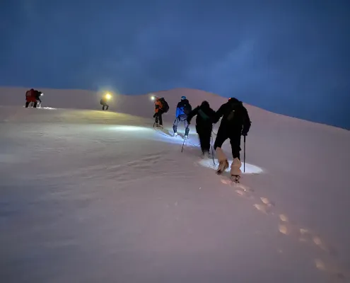 A key preparation day. Learn how to use crampons, ice axe, roping techniques, and ascending on snow. Mentally and physically prepare yourself for the summit push. Hydrate well and stay warm.
