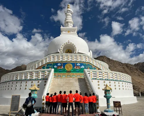 Begin your morning with a calming walk up to Shanti Stupa, soaking in stunning views of Leh city and the Stok range. Post-breakfast, gather for the expedition briefing where safety, itinerary, and protocols are discussed. After lunch, explore Leh Palace and wrap up any last-minute shopping.