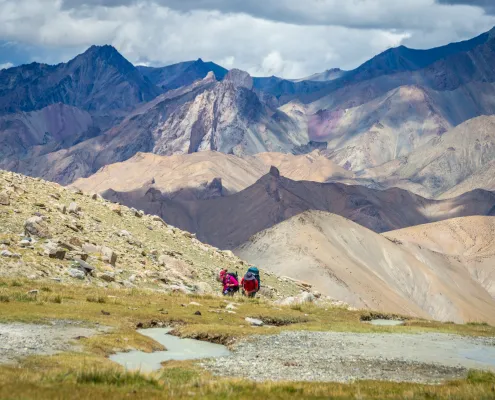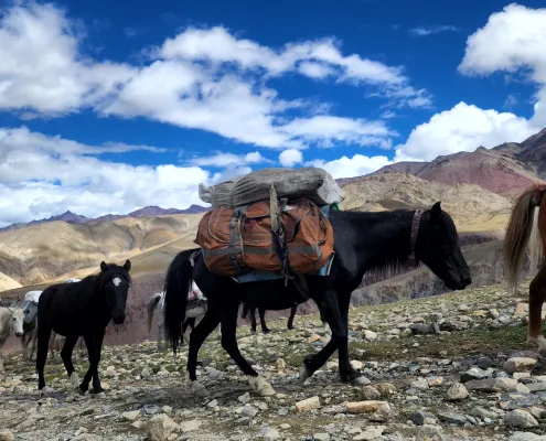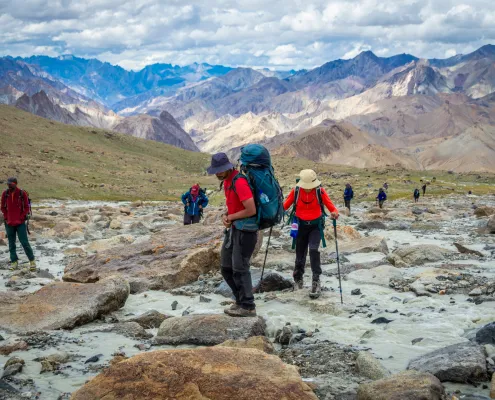 Trek through narrow valleys, crossing wooden bridges and small streams. Pass by grazing fields and local shepherd settlements before arriving at Markha, the largest village on the trail. Overnight stay in tents or homestay in Markha.