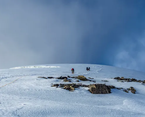 Spend the day resting and performing technical training. Check all climbing equipment, practice using ropes, crampons, and ice axes, and receive final briefings from guides. Acclimatization and preparation are key for the summit push. Overnight stay at Base Camp.