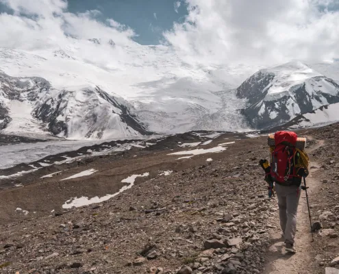 Today is dedicated to gentle acclimatization. We take a light walk from Base Camp to a nearby waterfall, gaining minimal altitude while allowing the body to begin adapting to the thinner air. The relaxed pace helps stimulate acclimatization without overexertion. The remainder of the day is spent resting, hydrating, and enjoying views of Lenin Peak. Overnight stay at Base Camp.
