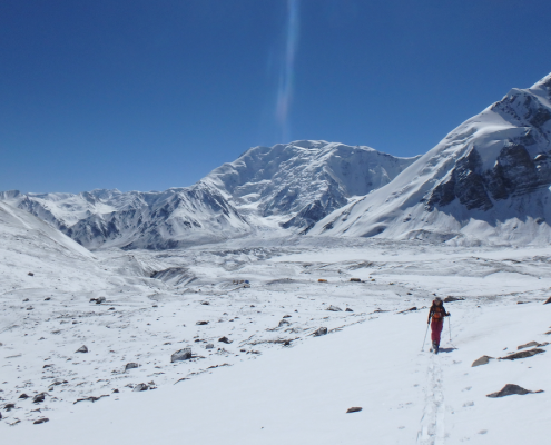 After adequate rest, we begin our ascent to Camp 2. The route involves gradual climbing across glacier terrain, requiring careful movement and constant awareness of crevasses. The pace remains slow and controlled to ensure proper acclimatization. On arrival, we establish Camp 2 and rest. Overnight stay in tents at Camp 2.