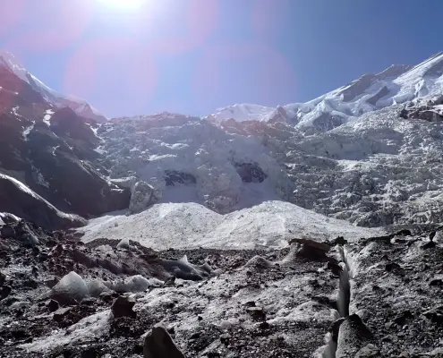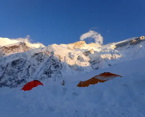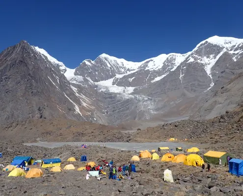 • Camp setups at high-altitude camps along the route.