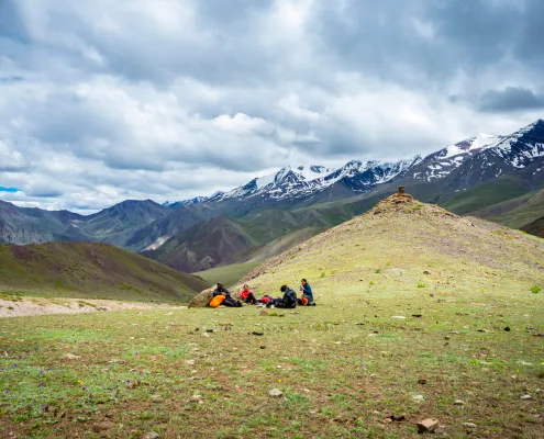 What sets this trek apart is the astonishing diversity of landscapes that unfold just a stone’s throw away from the roadhead. For wildlife enthusiasts, it’s a dream come true – keep your senses heightened for a chance encounter with the elusive Snow Leopards, agile Bharals, foxes, and the regal Tibetan Wolves. The adventure doesn’t stop there. We understand that every trekker is unique, and so is their appetite for challenge. That’s why our Stok to Shang Sumdo trek is customizable. If you’re new to the game, the original five-day journey promises a perfect blend of excitement and comfort. But for those hungry for more, we offer the option to add at least two more passes to your itinerary, creating a tailor-made experience. Ladakh’s unexplored beauty is waiting for you; all you need to do is take the first step.