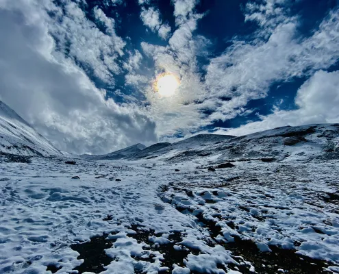 The UT Ladakh Kangri peak, located in the upper valley of Rumtse village, is a prominent snow-covered peak that was recently explored and successfully climbed by local mountaineers from the Ladakh Mountain Guides Association in 2019. UT kangri is the best for those who are new to mountaineering and planning to do a six-thousander at the beginning.