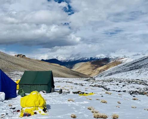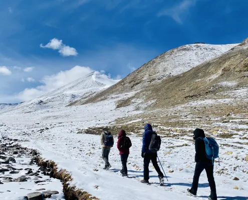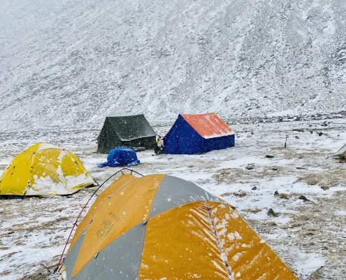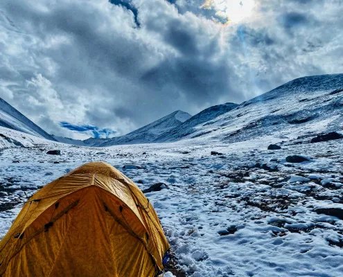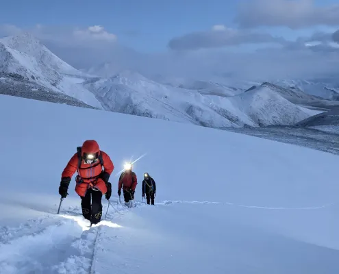 We have modified the usual itinerary in order to turn it into a rigorous winter training program. This will help the climber learn the skills and techniques of mountaineering in the best way possible. You will learn the use of Ice Axe and Crampons. You will alos undertake the skill training that includes Anchoring, Rappelling, Use of Ice Pitons, Fixed Ropes, Jumaring, Crevasse Crossing and more.